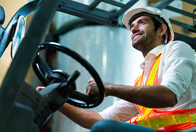 Stockage de 400 m² avec cercleuse, compresseur, chariot élévateur (1,5 t), gerbeur électrique (1t), transpalettes –racks pour le stockage en volume.